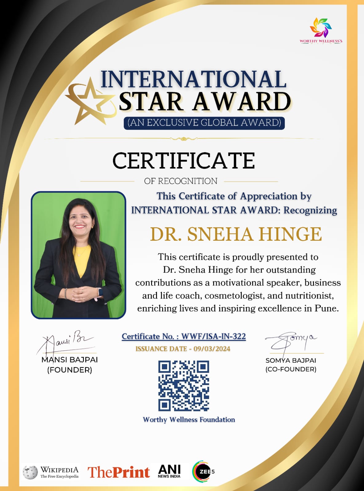 She is also Entrepreneur / Cosmotologist / Nutritionist